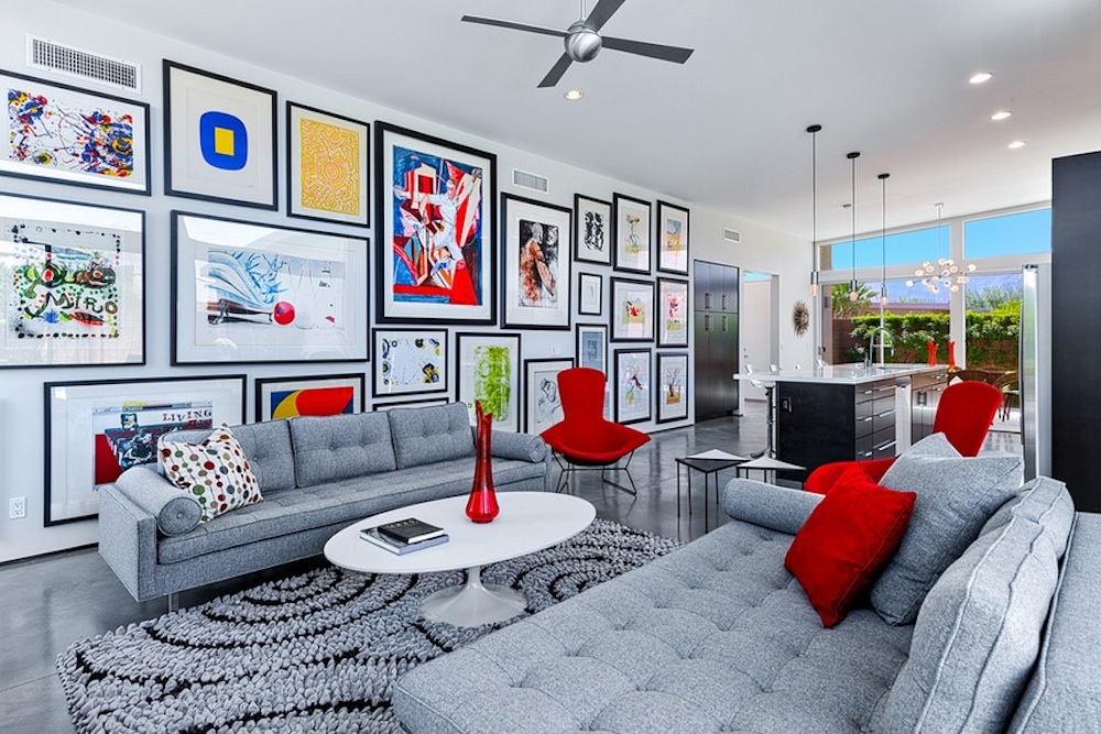 • Bạn có thể lựa chọn những tác phẩm nghệ thuật, tranh treo tường có màu sắc nổi bật để trở thành điểm nhấn chính của không gian. Kết hợp với những món đồ trang trí khác như lọ hoa, nến, đèn trang trí sẽ giúp tăng thêm sự ấn tượng và sang trọng.
