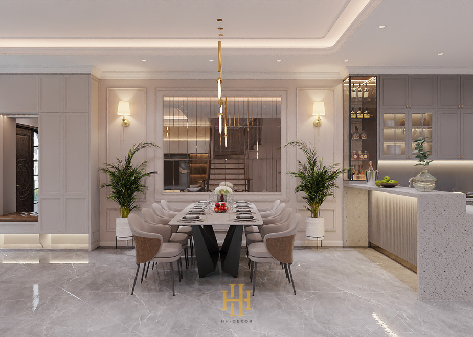 Trong một ngôi nhà phố nằm giữa lòng thành phố nhộn nhịp, Khánh House là một dự án đặc biệt mà HH Decor đã dành rất nhiều tâm huyết để hoàn thiện. Nhà phố với diện tích 190m2 là tổ ấm của một gia đình trẻ, những người yêu thích sự thanh lịch của phong cách Tân cổ điển nhưng vẫn không muốn đánh mất đi sự tiện nghi và đơn giản của lối sống hiện đại.