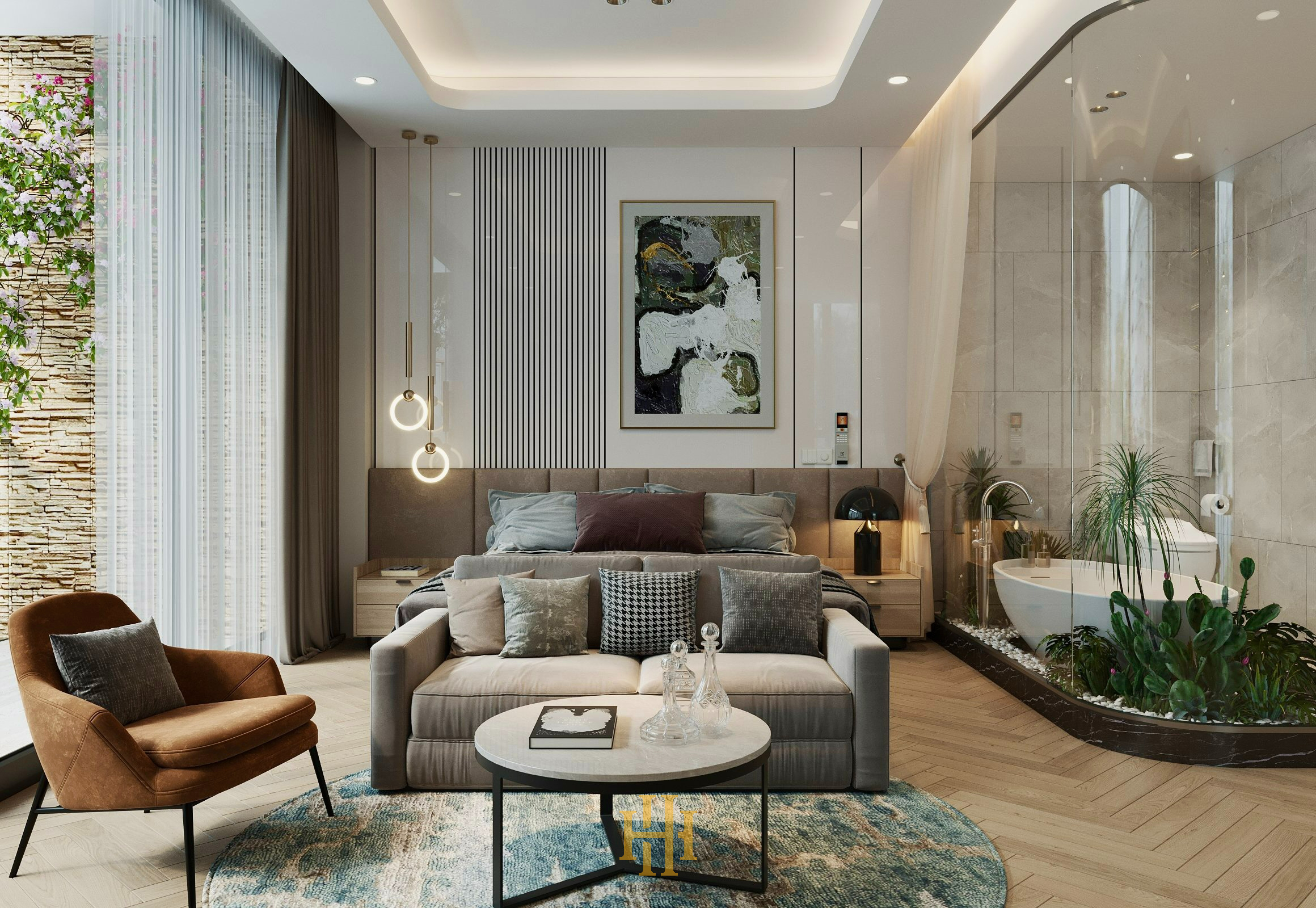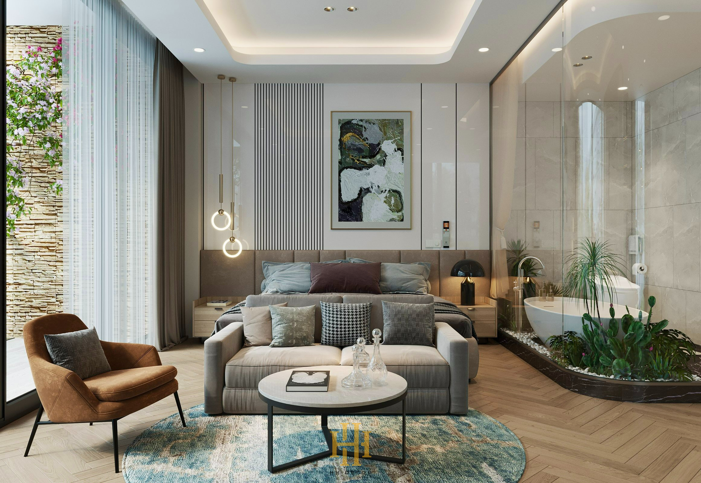 Mẫu thiết kế nội thất phòng ngủ tầng lửng biệt thự Ecopark