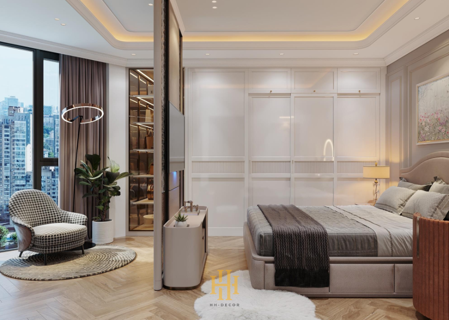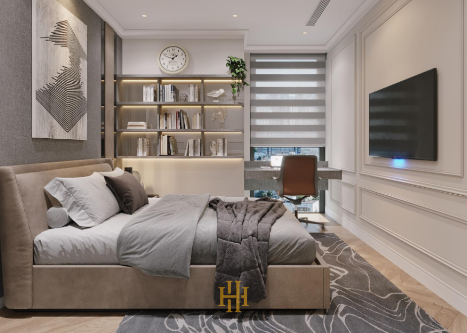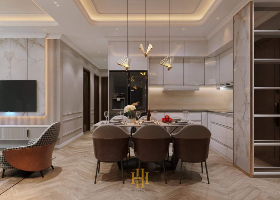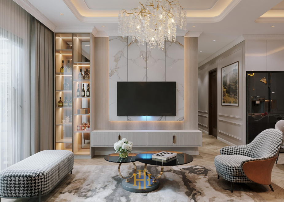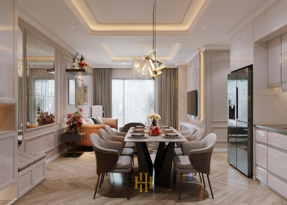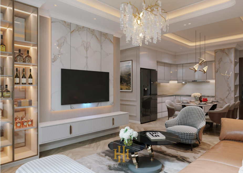 Chung cư tại HDI Tower như một tác phẩm nghệ thuật nội thất tinh tế, phản ánh gu thẩm mỹ cao của chủ nhân. Với mục tiêu tối ưu không gian, chung cư được thiết kế theo phong cách Tân cổ điển kết hợp hiện đại, mang đến không gian sống rộng rãi, thoải mái nhưng không kém phần sang trọng.