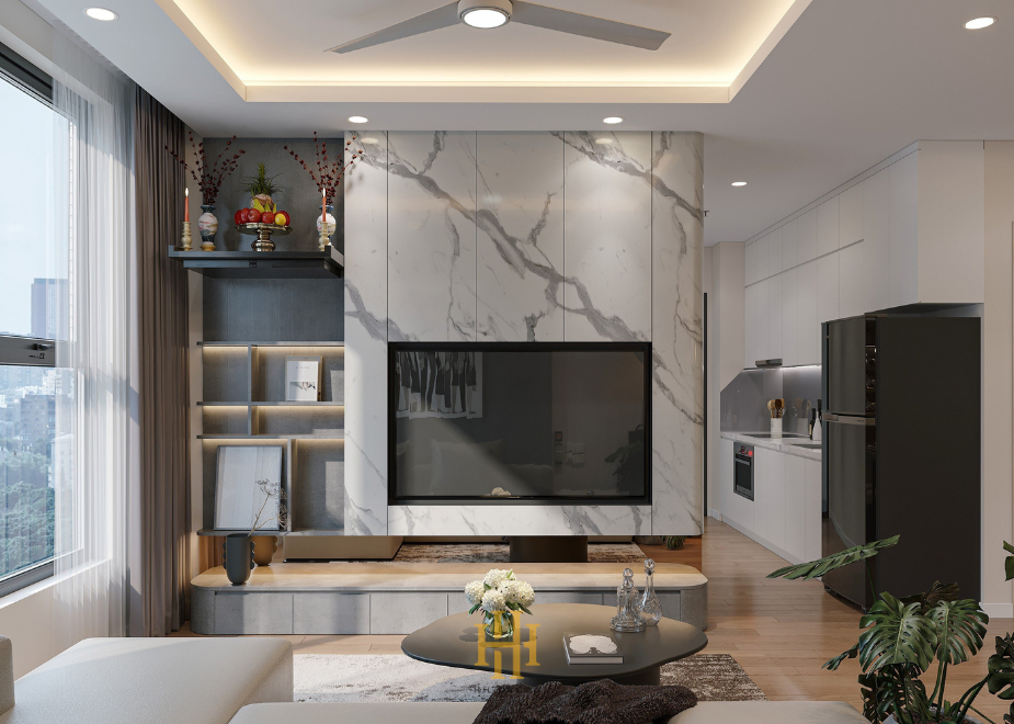 Mẫu thiết kế nội thất phòng khách và bếp chung cư Trinity Tower