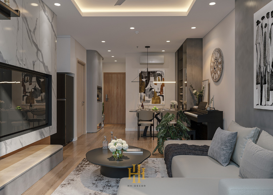 Gia chủ của căn hộ 70m2 này đặt ra yêu cầu rõ ràng: tối ưu hóa công năng sử dụng không gian trong khi thể hiện phong cách hiện đại với hai tông màu chủ đạo trắng và xám, cùng một phòng ngủ trẻ em đặc biệt với giường tầng và sắc hồng tươi. Nhóm thiết kế của HH Decor đã mang đến một giải pháp toàn diện, cân bằng giữa thẩm mỹ và chức năng.
