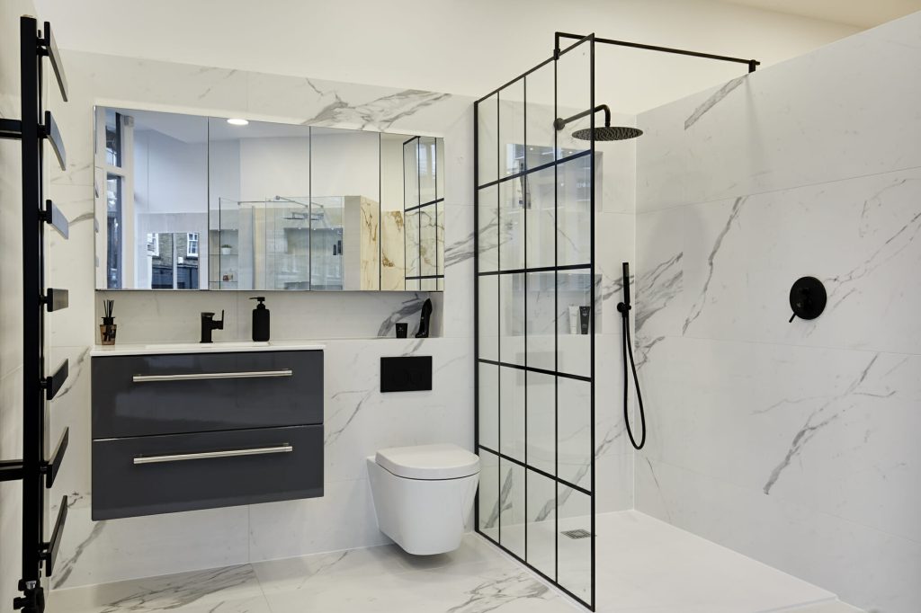 - Lựa chọn các vật dụng phòng tắm như gương, kệ, móc treo phù hợp với tổng thể không gian.
