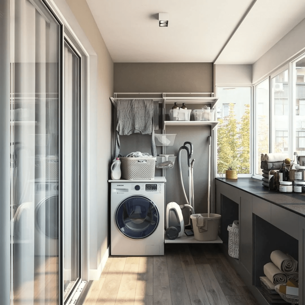 Mẫu thiết kế nội thất khu vực giặt phơi tại chung cư