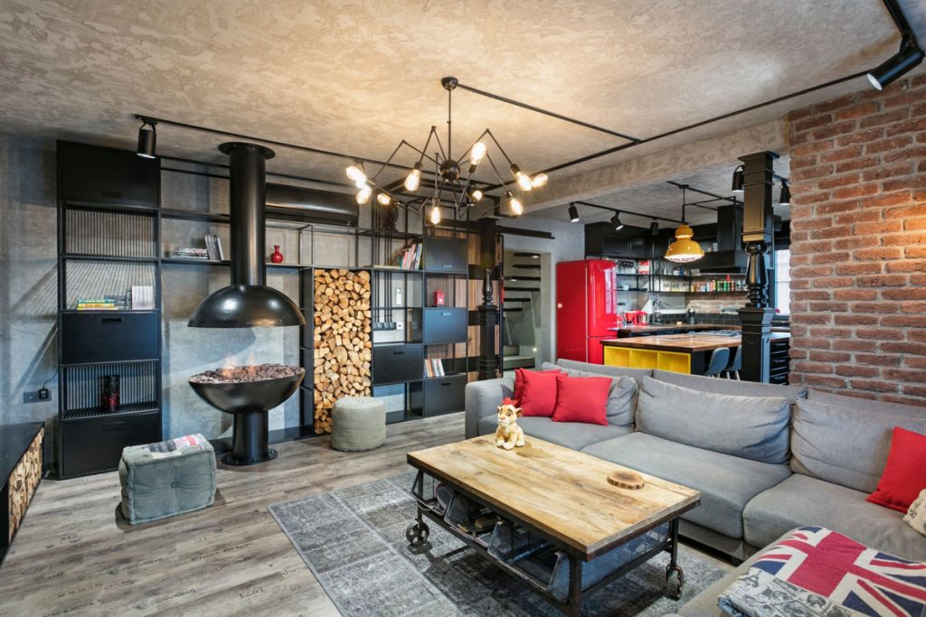 - Bố trí đồ nội thất theo phong cách công nghiệp, với các chi tiết thô ráp, cứng cáp, tạo nên vẻ mạnh mẽ và cá tính.